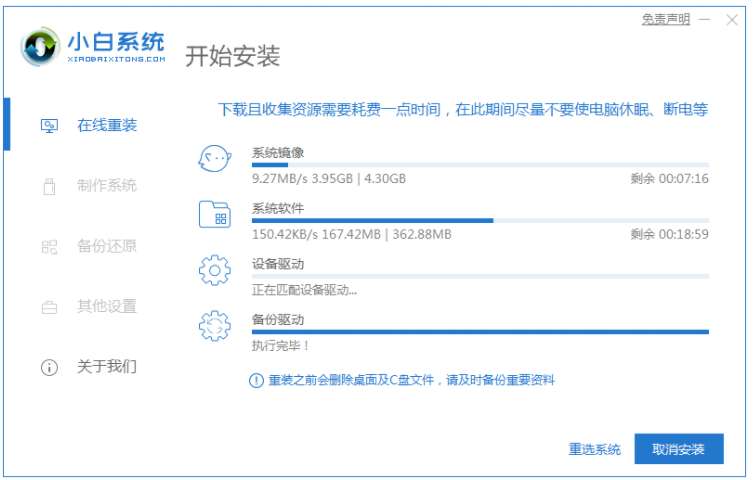 5、进入 PE 系统后点击小白装机工具继续安装系统,只需要耐心等候。