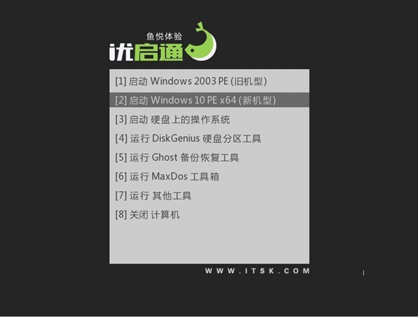 三,在选择闪存驱动器指令后, 我们将被带到一个突出的菜单界面, 在那里我们选择第二个选项: 开始 Windows 10PEx64 (新号码) 。