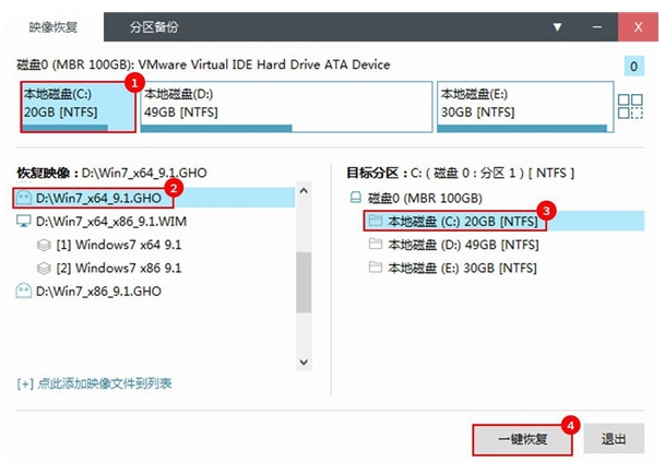 在“ 恢复图像” 栏中, 找到 Win7 或 Win10 之前存储在磁盘上的 Win10 系统文件。 当您选择 C 时, 请点击下面的“ 一个密钥 ” 。