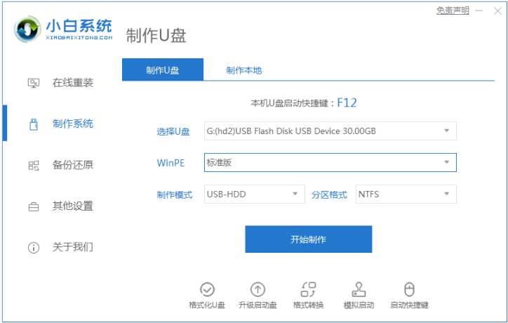 1、首先使用小白一键重装系统工具制作好u盘启动盘,具体的制作方法参照:小白u盘启动盘制作教程。