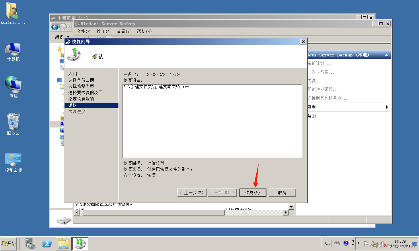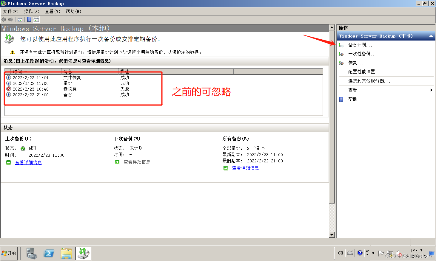 了防止丢失,我们可以使用服务器所添加的功能(Windows Server Backup)来进行备份与恢复。