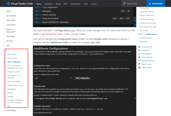 vscode官方文档当中也有相关的配置,大家可以参考。 https://code.visualstudio.com/docs/cpp/config-mingw