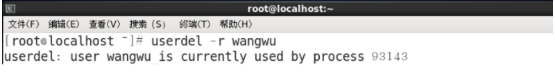 注意:已经登录的wangwu用户删除的时候提示删除失败,但是没有登录的lisi 用户可以正常删除,那这个时候想删除wangwu怎么办呢?
