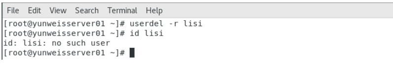 选项:-r:表示删除用户的同时,删除其家目录/home下的对应文件夹