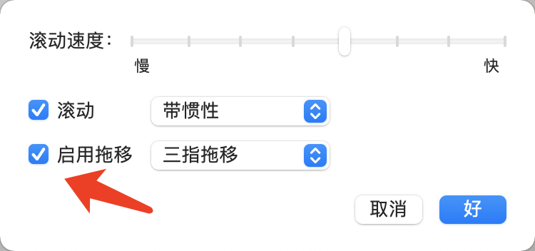 第二个功能就是三指拖移,用过macbook的小伙伴都知道,mac的触控板是一个很好用的工具,如果用的好,完全可以不需要鼠标,这里有一个容易被忽视的功能就是三指拖移,他的工作原理就是把光标放在窗口边栏上,我们就可以随意移动窗口,可以说是非常方便!往常我们拖动窗口,需要用力按一下触摸板再移动,有了三指拖移,根本不需要用力按压触摸板。