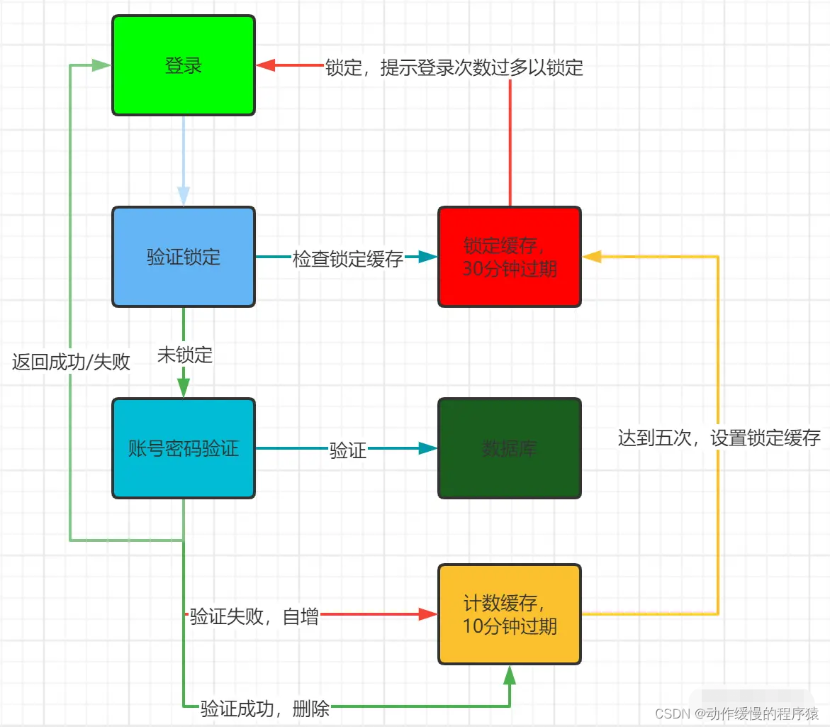 今天看到一个文章,‘阿里面试官问我:十分钟内连续登录5次失败,需要等待30分钟才能登录’,觉得很有意思,虽然是一个普遍需求,但是解决方案非常多,于是自己半个小时画了个图,写了几行伪代码,来解一下这个需求,毕竟天天CRUD也挺无聊的,非最佳解决方案,仅供互相讨论学习,希望各位轻喷。