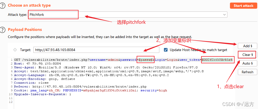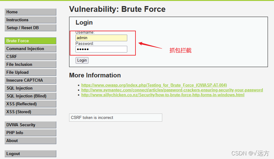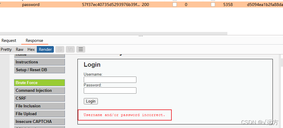 点击brute force输入正确的用户名 错误的密码,点击登录