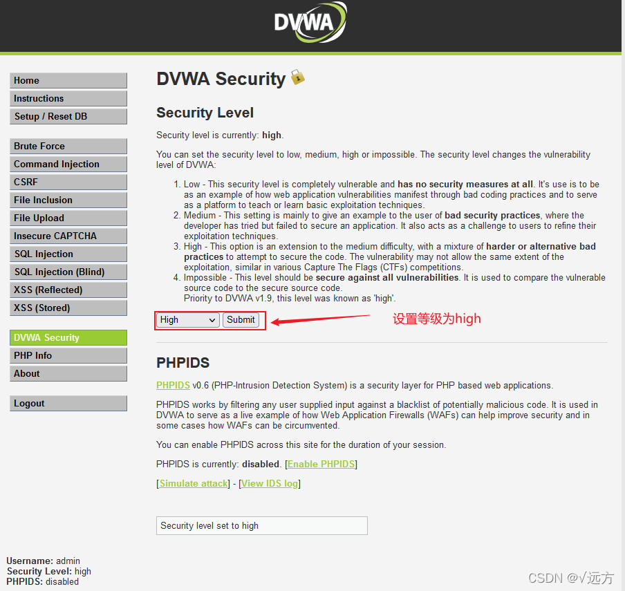 DVWA(Damn Vulnerable Web App)是一个基于PHP/MySql搭建的Web应用程序,旨在为安全专业人员测试自己的专业技能和工具提供合法的 环境,帮助Web开发者更好的理解Web应用安全防范的过程。