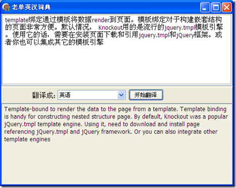 function Translate(AAppID: string; AText: string; InLanguage: string='en'; OutLanguage: string='zh-CHS'): string;