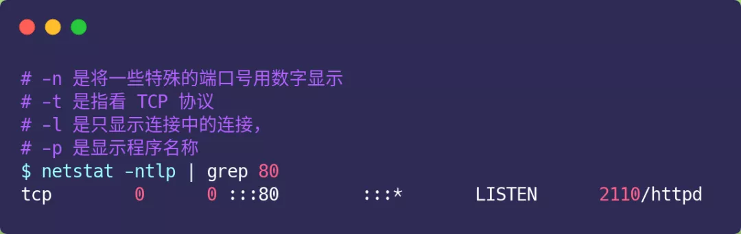 例如,如果想知道哪个程序在特定港口活跃,我要知道在80号港口活跃的是什么程序,具体如下: