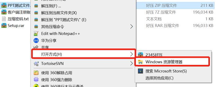 使用右键单击按钮,选择要打开的压缩文件,然后打开菜单,用 [窗口资源管理器] 打开。
