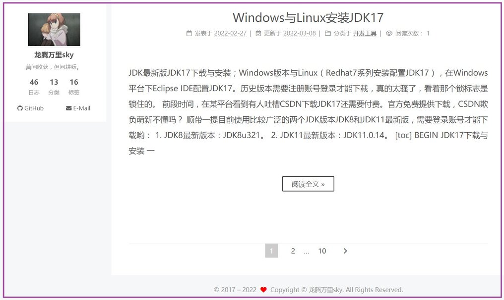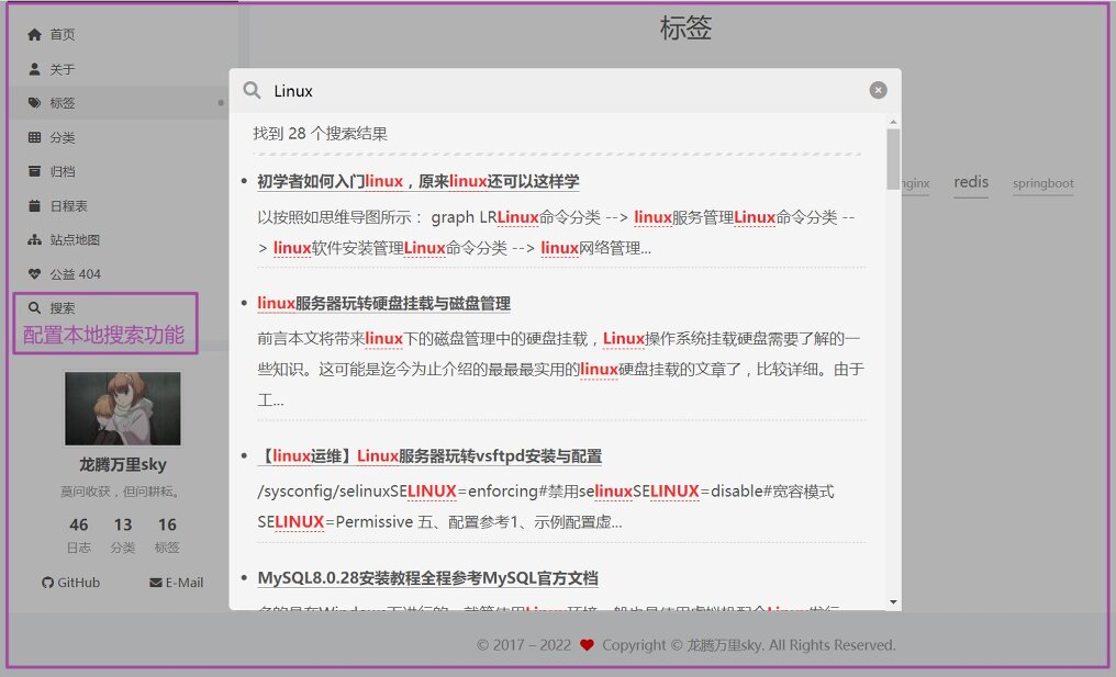 环境( 在本地创建 ssh 键, 然后配置为 github)若您没有 Github 账户或 Git 环境, 可以使用我的历史博客作为镜像仓库: Git 推到 Github 。