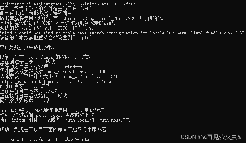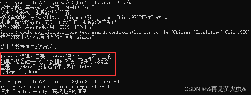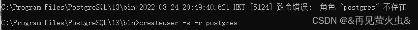 第四,导航到 C: Program File PostgreSQL/1/13bin, 打开 cmd, 按顺序执行以下命令 。