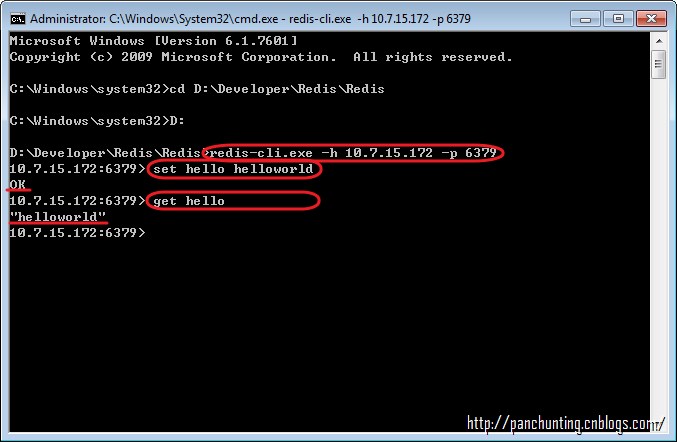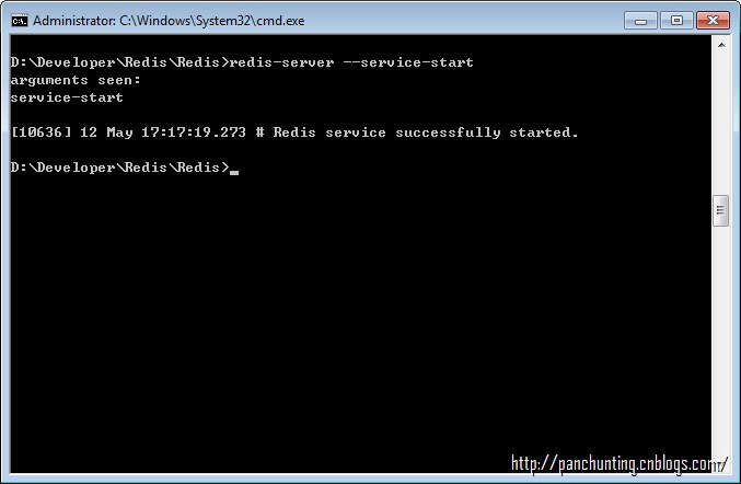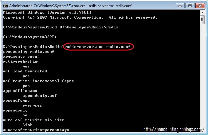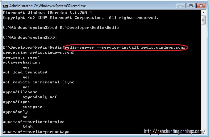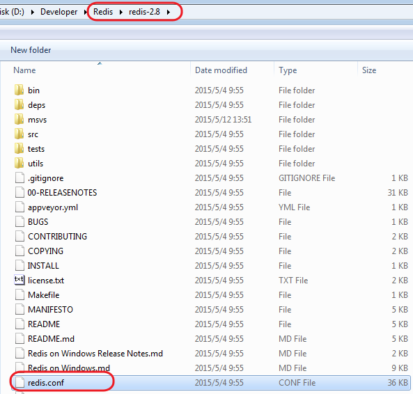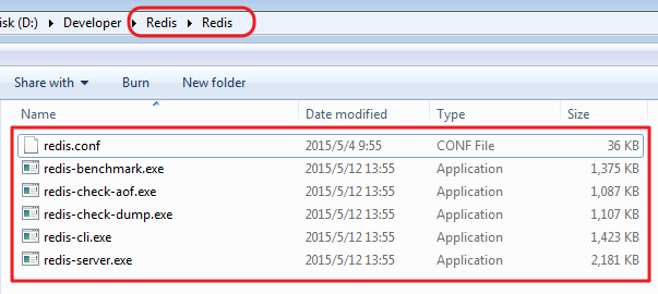 现在我们有我们所需要的所有文件。我们可以在下面很好地使用这些文件。打开它们。CMD, 定位到目录D:DeveloperRedisRedis,然后执行如下命令