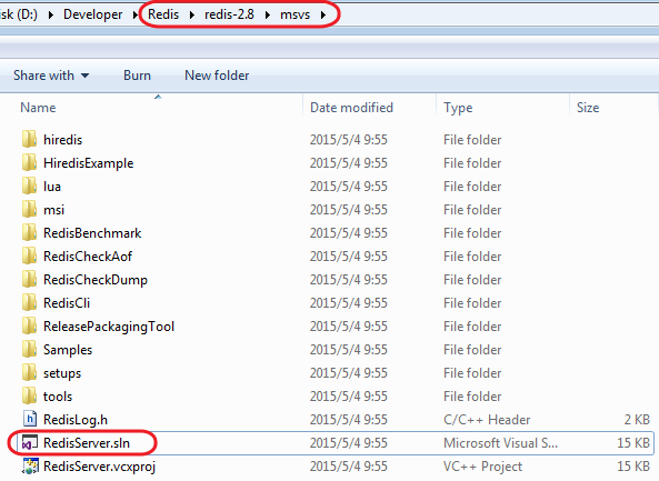 点击Download ZIP在下载后,我们发现它没有提供现成的安装文件,要求我们自己组装它。Redisredis2.8msvs,打开文件RedisServer.sln