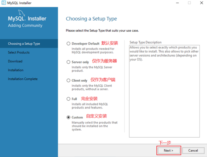 服务器机 : 此选项代表服务器, MySQL 服务器可以和 Web 服务器等其他服务器程序一起运行。 MySQL 服务器设置为使用适当数量的系统资源 。