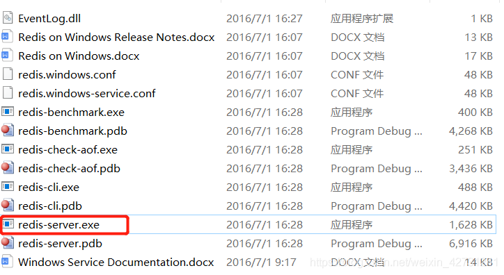 在降压目录中发现了 Redis-server; 双击以启动服务 。