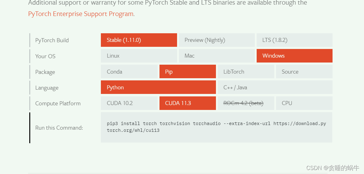 最后,在下载适合 cuda 的 gpu 环境( 建议 pip) 后, 将命令安装复制到本地启动 PyTorrch 网络,