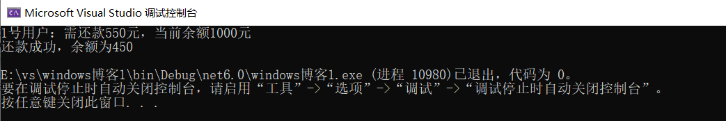 现为金钱; 控制台。 writeLINE (“ 成功还款余额 ” ), 现为金钱 ;
