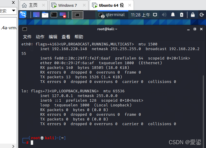 然后建立一个实验环境,由攻击机器(Kali)和目标机器(Win7)组成。