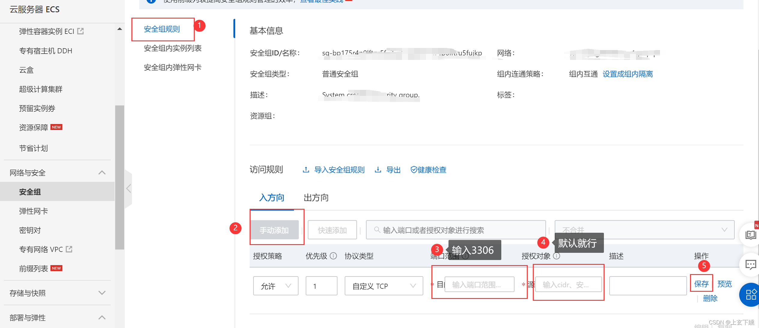 选项二:打开阿里云服务器3306号端口。