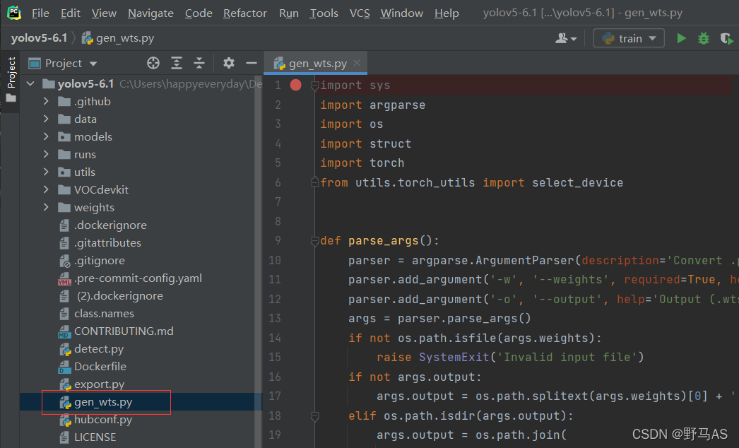 1 个来自Tensorttx. Py Yolov5 的gen_wts 转至其本身的 Yolov5 培训环境