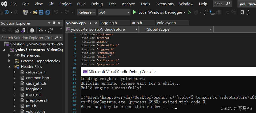 windows上配置TensorRT yolov5 -6.1部署 tensorrtx视频流推理