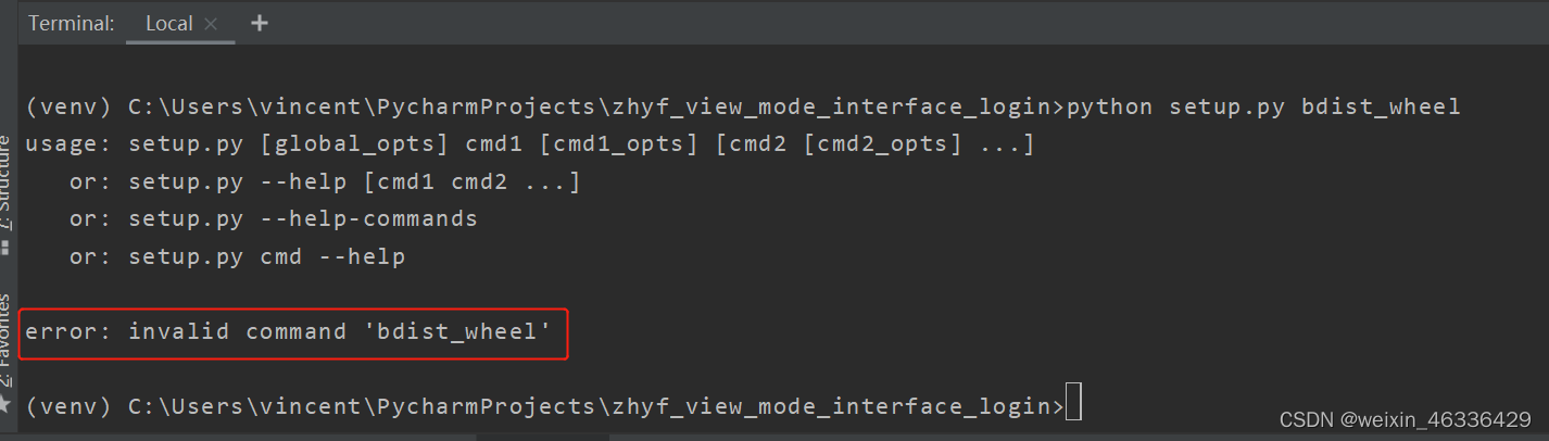 如果执行下列命令: python 设置。 Py bdist_ 轮, 可能会报告以下错误 :