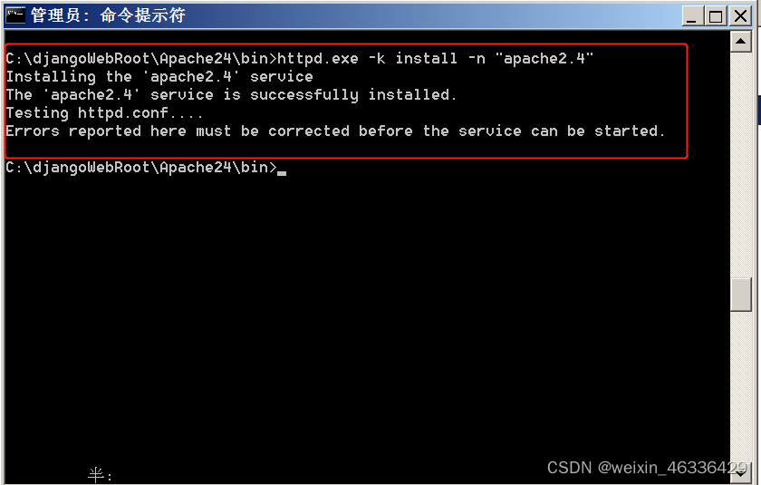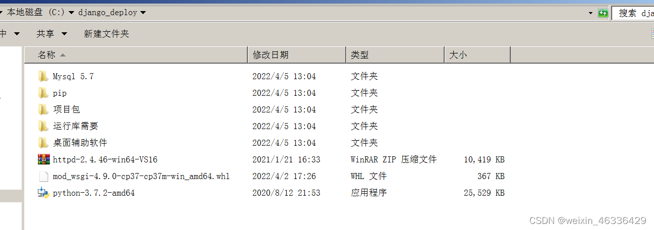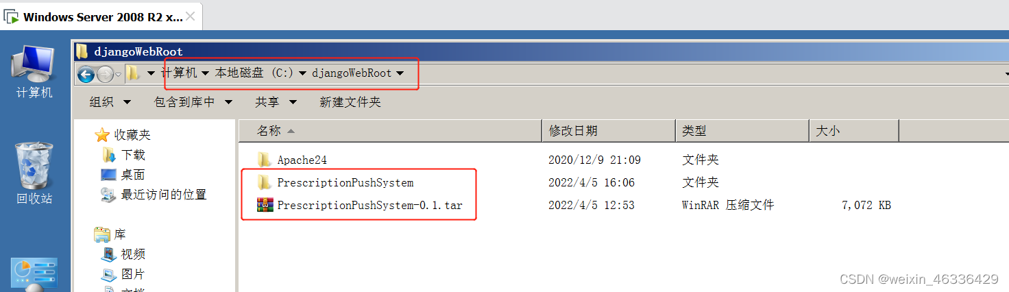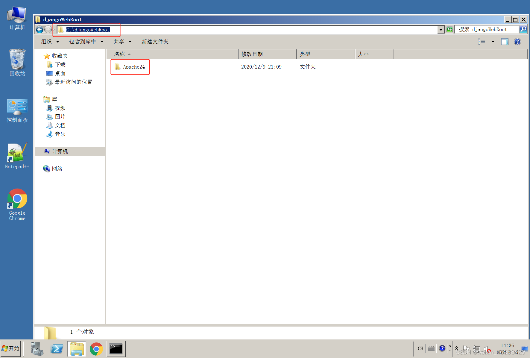 1 创建了一个部署目录,名为 C:djangoWebroot, 将 Apache 软件包压缩到 Apache24, 并复制到部署目录C:djangoWebroot。