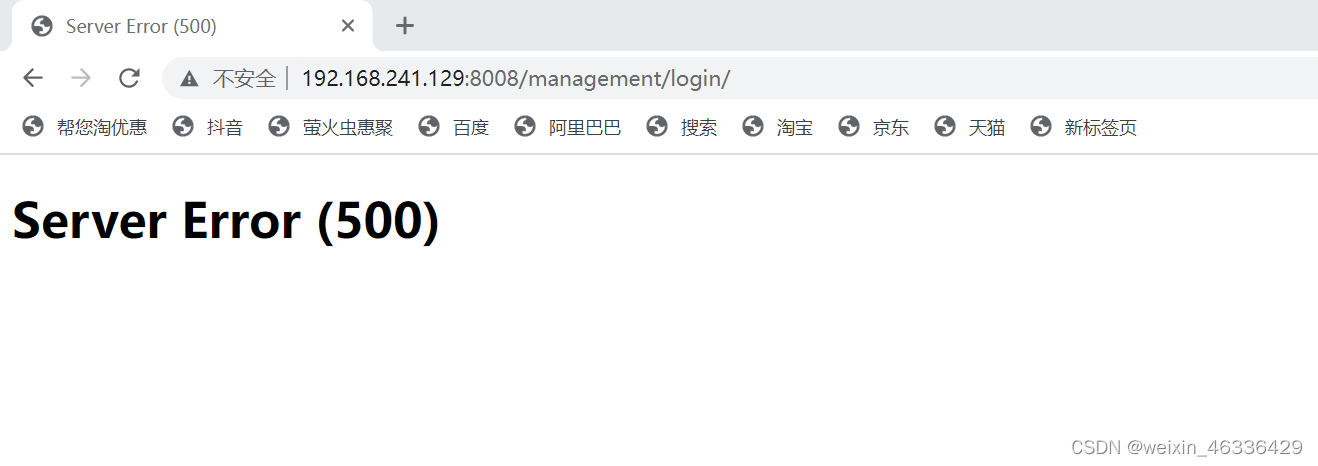 服务器 500, DBUG 关闭, 所以我们返回到 500。 我们需要查看日志, 找出为什么数据库没有被设置 。