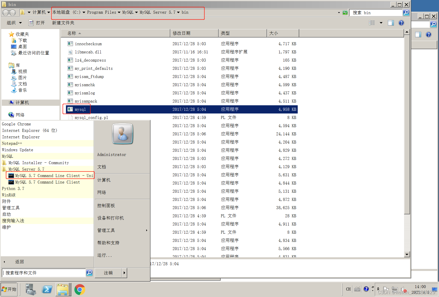 必须手动插入 Mysql 环境变量 : 在所有程序中必须找到新安装的 Mysql 选项, 文件夹目录必须位于安装位置, 下一个 Mysql 执行文件的路径必须添加到环境变量路径中 。