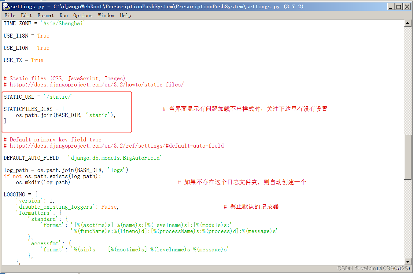 STATICFILES_DIRS: 这是用来描述静态资源位置的目录 。注意它是个列表,它指示Django首先在STATICFILES_DIRS目录中查找静态文件,然后在每个应用程序的静态文件夹中查找静态文件。STATICFILES_DIRS 目录包含我项目中的所有静态资源 。