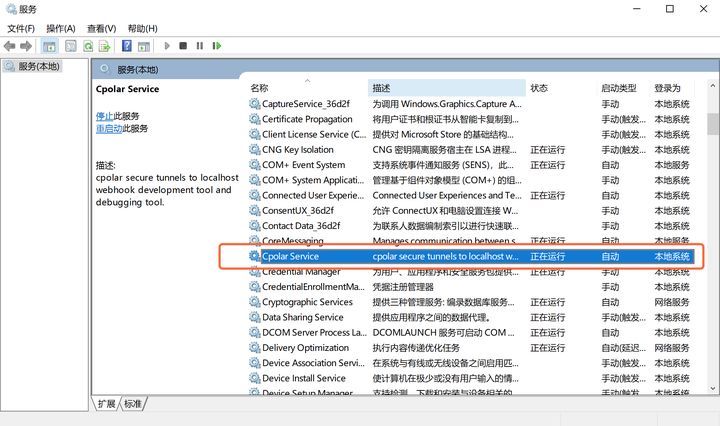 只要它在新的"服务"名单上,就没事找到cpolar,这表明, cpollar 已被成功添加到 Windows 启动服务列表中 。此时此刻,我们可以重新启动电脑这篇文章是全球之声网络特别报导的一部分(CC BY-NC-SA 2.在Pollar, 在仪表板界面的左侧,点击“状态”按钮,我们正在看数据隧道 数据隧道已经被打开。这是第一次在全球发射电极, 并且可以确定电极是否正确开始。现在启动预先配置的数据隧道