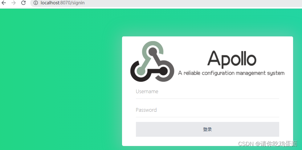 存取 http://localhost:8070 初始化后, 默认登录账户密码 u: apollo p: admin