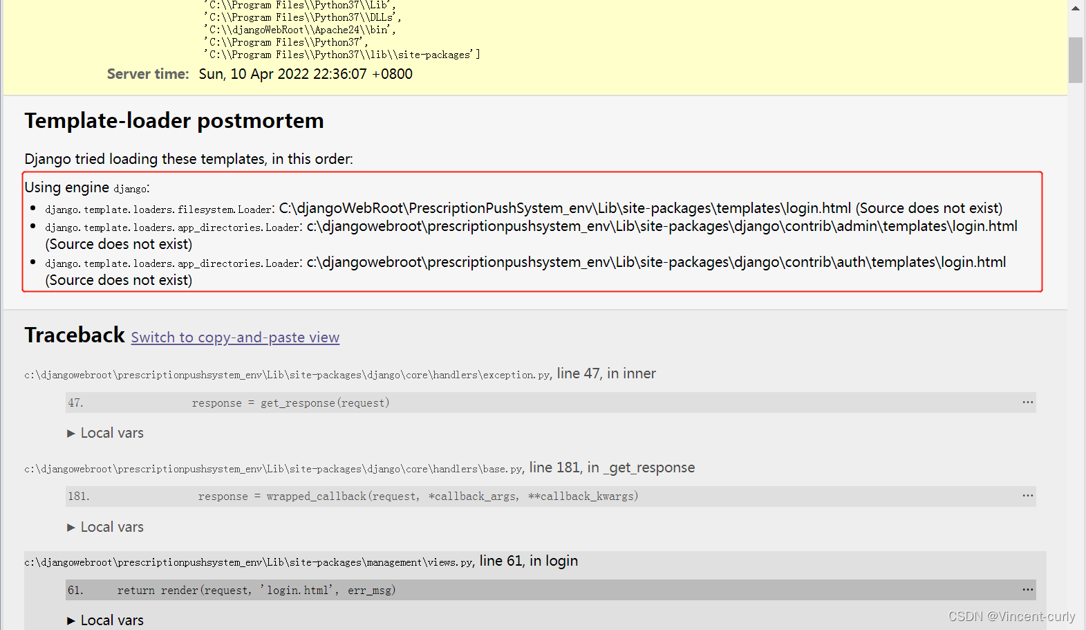 关于模板, 视图 C:djangoWebRootProotPushSystem_envLibsite- package 不存在 。