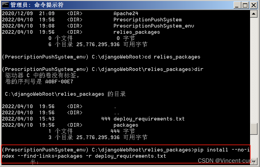(PrescriptionPushSystem_env) C:djangoWebRootrelies_packages>pip install --no-i