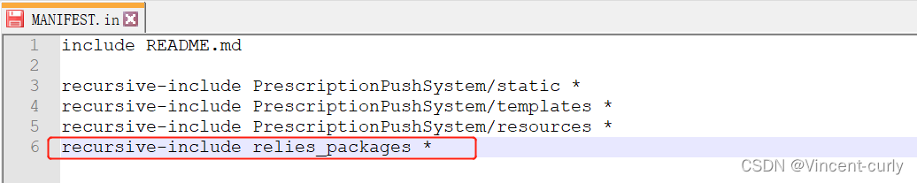 4. 在必须包装在 MANIFEST.IN 文件中的参数中包括附属文件夹文件夹-包件。