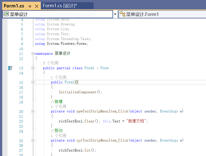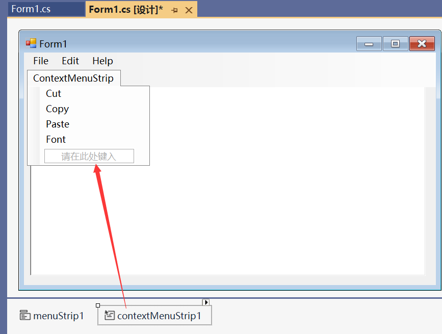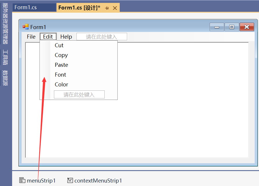 在工具菜单下,选择菜单Strip。 、 ContextMenuStrip 、 RichTextBox 三个控件