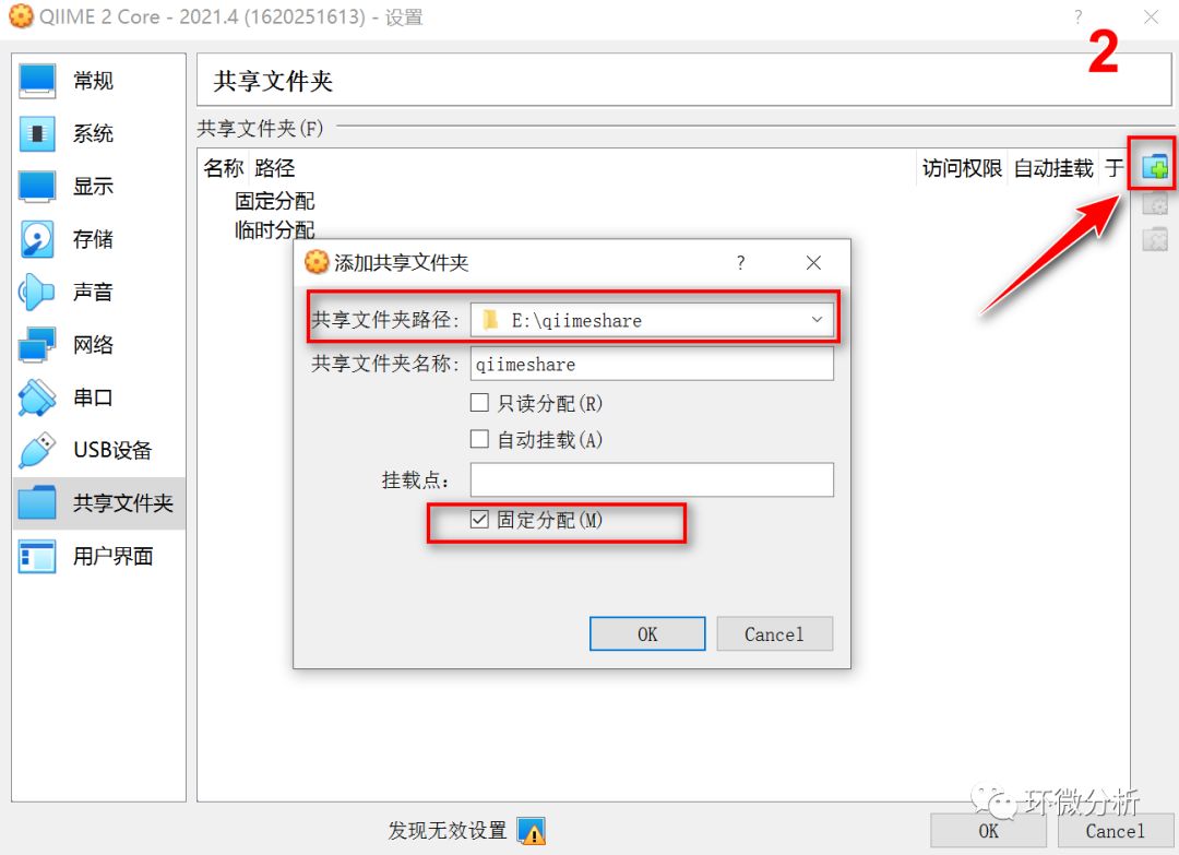 建立文件存取共享文件夹。 首先, 在您的计算机的 Windows 系统中创建共享文件夹 qimeshare, 使用先前建立的 E: qiimeshare 作为共享文件夹 。