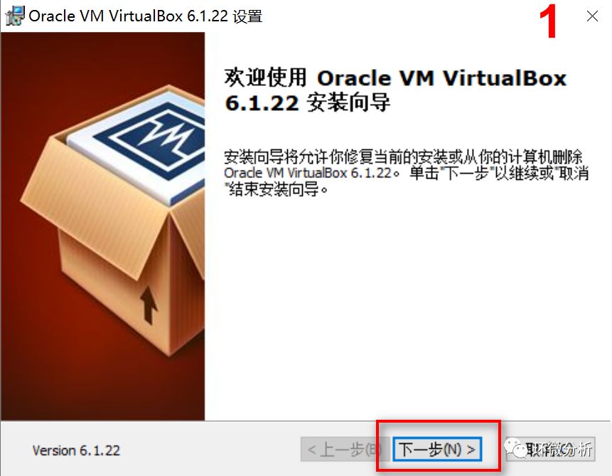 安装虚拟机器 -- -- 第一次双击以发射虚拟信箱-6。 One.22-144080-Win,然后输入安装向导界面,然后单击 " 下一步 " 。