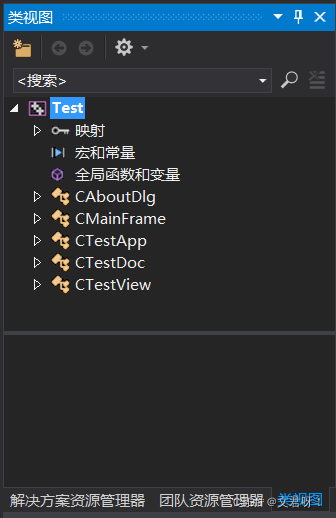 扩展类视图中的测试根节点, 以显示工程的所有五个类别, 如图所示 : 在视觉工作室菜单栏中选择 [view] 菜单, 然后单击 [level saw] 菜单项, 这将打开一个分类视图子窗口, 以协助检查项目中的级别等级 。