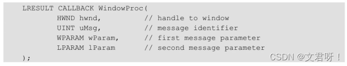 (7) 创建窗口进程函数。窗口进程函数的语法可以在成员对 WNDCLASS lpfnWndProc 成员变量的解释中找到。