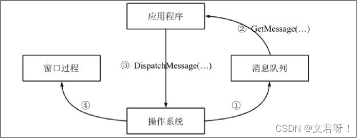 (1) 操作系统从应用程序中获取窗口信息,并将其引向应用程序的电文队列。