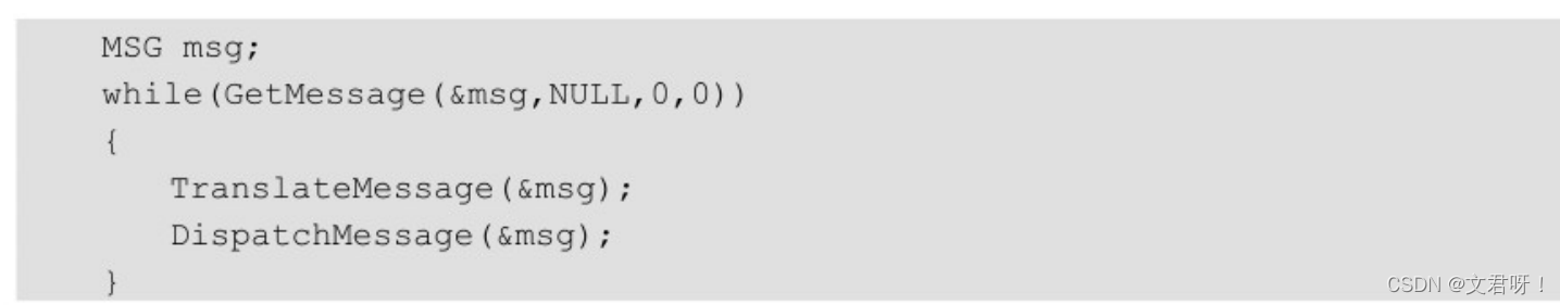 (2) 在信息循环中,该应用程序援引GetMessage方法从电文队列中检索电文。在取出消息后,信息可以通过应用程序预处理。例如,我不知道我能不能回答一些新闻要生成新信息, 请使用 TranslateMessage 。
