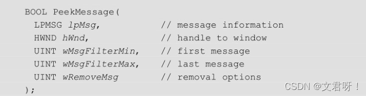 也可以使用PeekMessage 函数从电文队列中获取电文,该功能有以下原型: