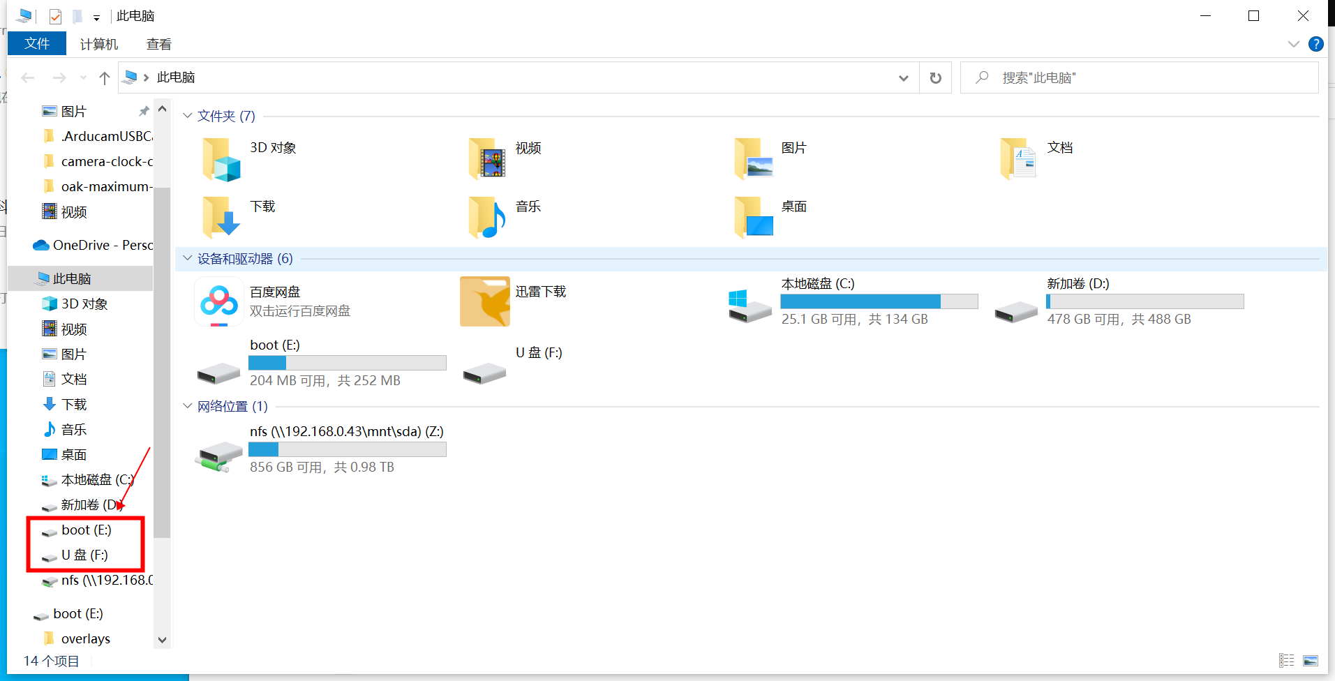 等几秒钟后, 计算模块 eMMC 在 Windows 中作为磁盘出现 。