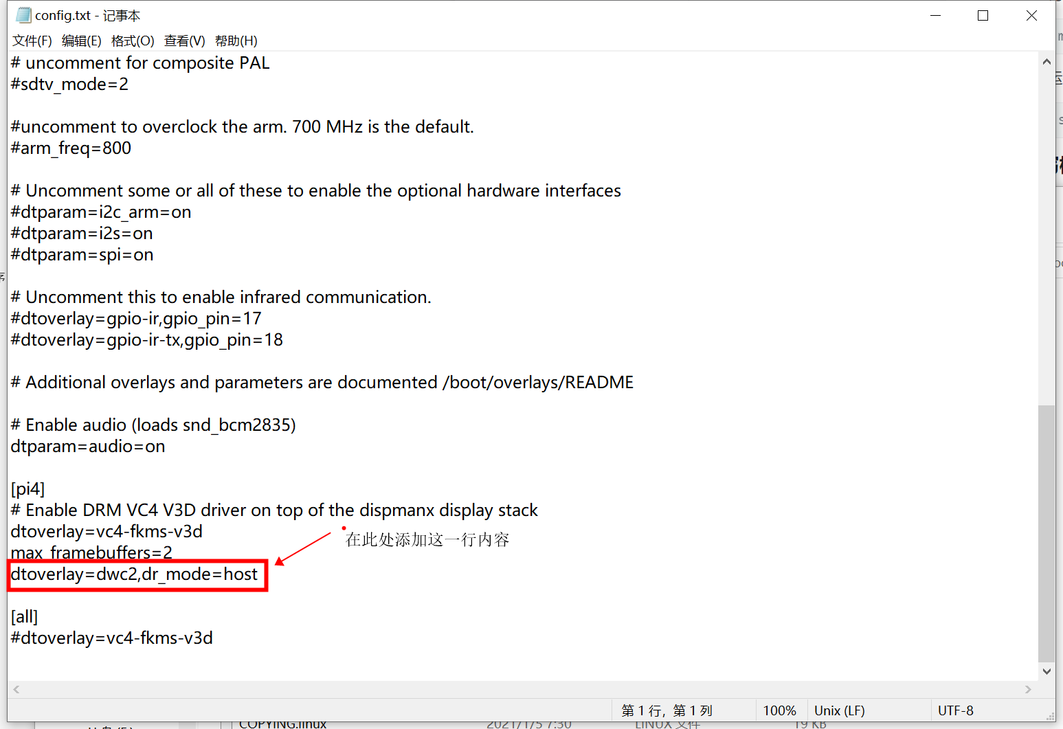 定位 emmc.txt 中的配置, 添加以下内容, 并保存退出 。