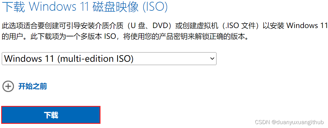 加入官方网络, 选择“ 下载 Windows 11 磁盘图像 ” (ISO), 选择版本, 建议第一个版本, 然后选择语言, 确认, 然后单击“ 64 位下载 ” 开始下载 。