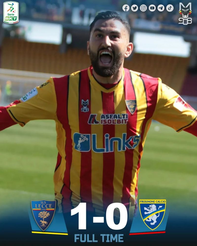 Lecce的主要球场在第十二回合击败了Palma 4 -0, Koda在球场前半场三次破碎了Buvon的门,