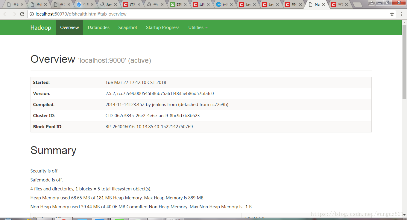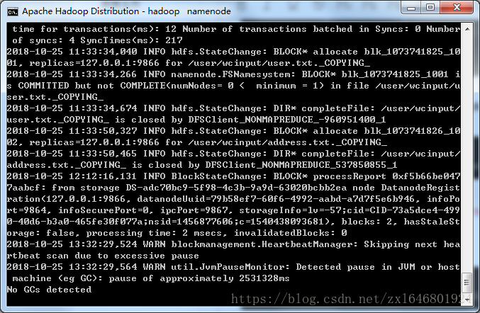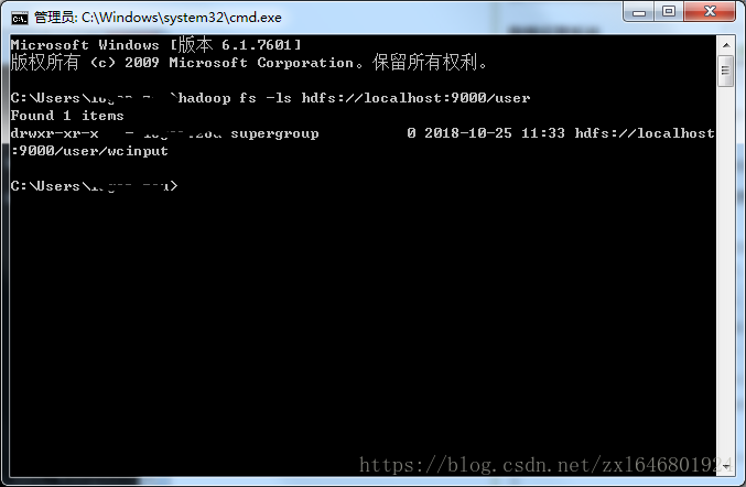 Hadoop fs-put D: 个人调试。 Blog hdfs://localhost: 900/user/wcinput